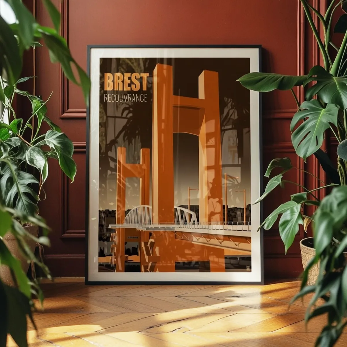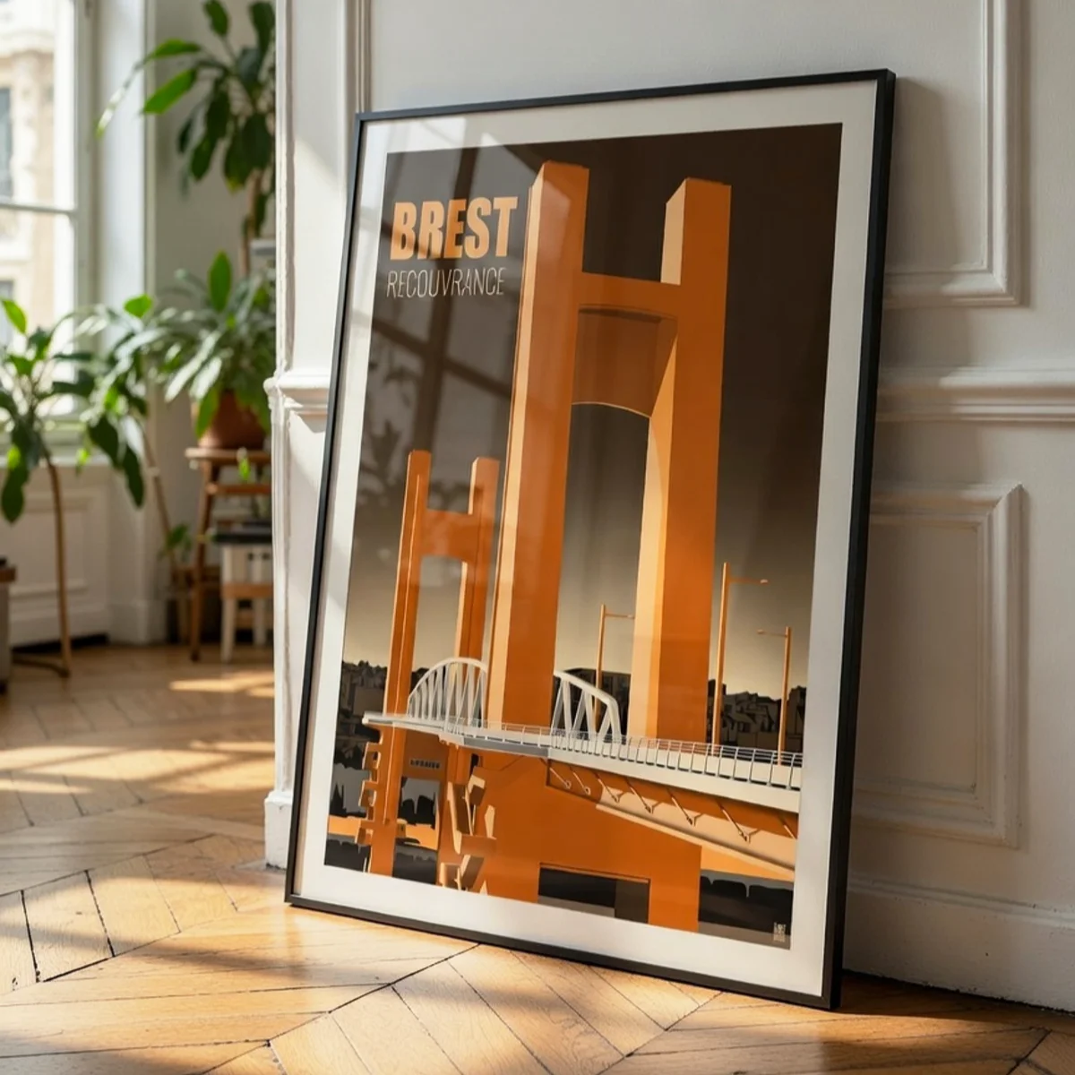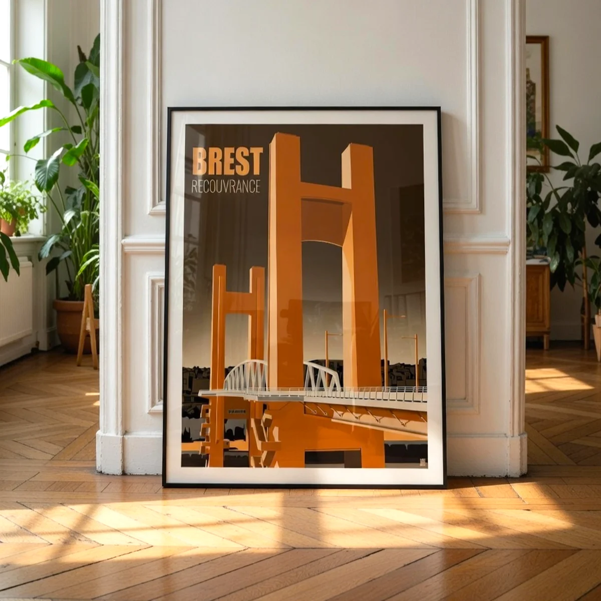 Que vous soyez un collectionneur d’affiches urbaines, un amoureux du Finistère ou à la recherche d’une pièce de décoration sobre et puissante, cette illustration du Pont de Recouvrance est une invitation à contempler l’âme de Brest dans sa forme la plus pure.